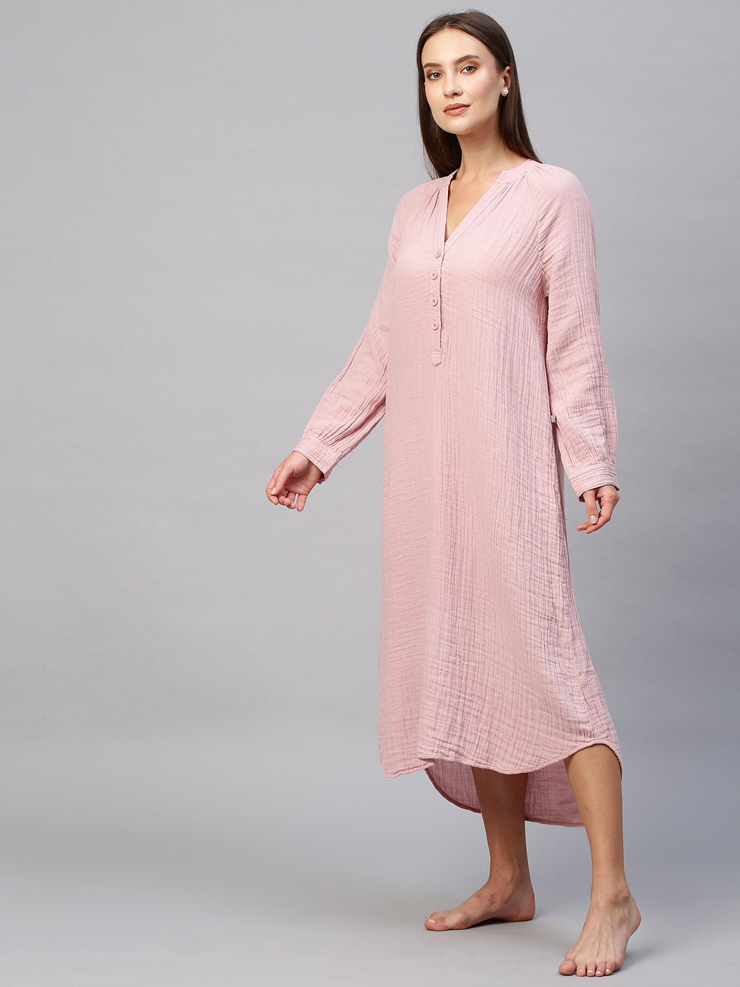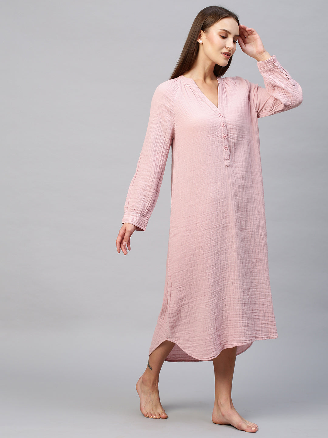 Crinkle Double Crepe Cotton Pop Over Lounge Dress