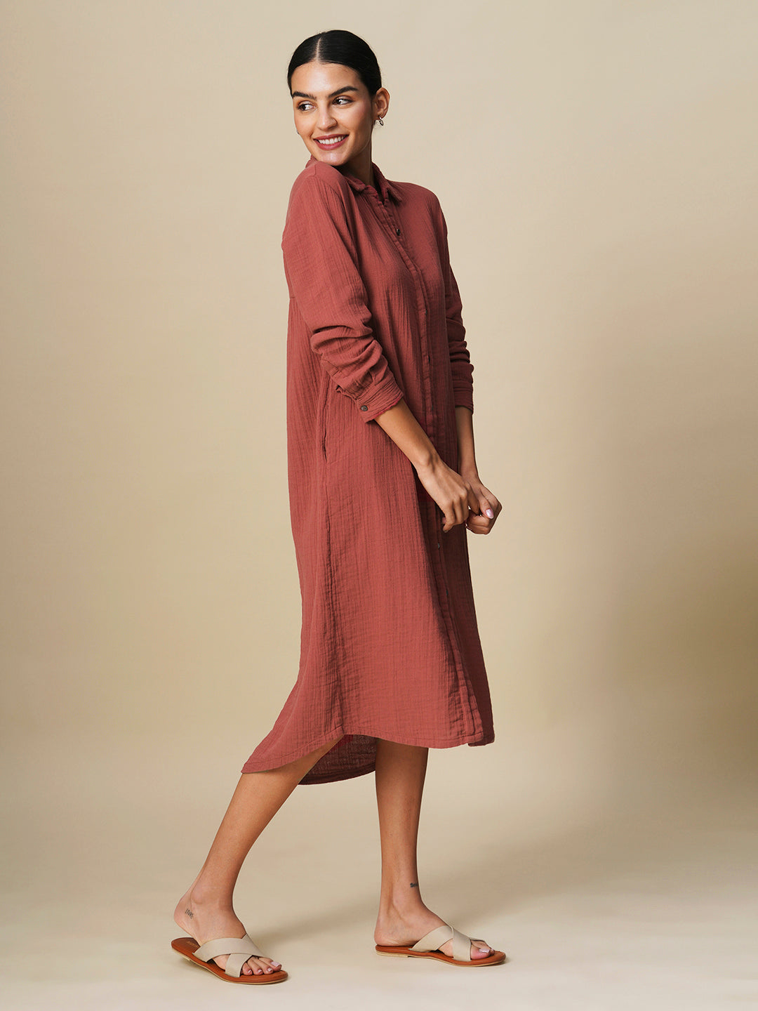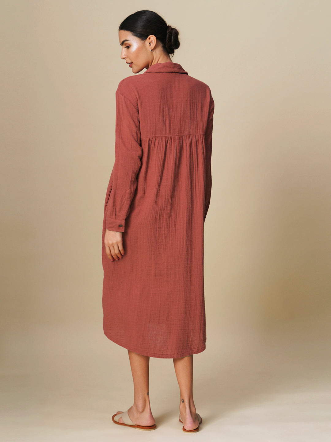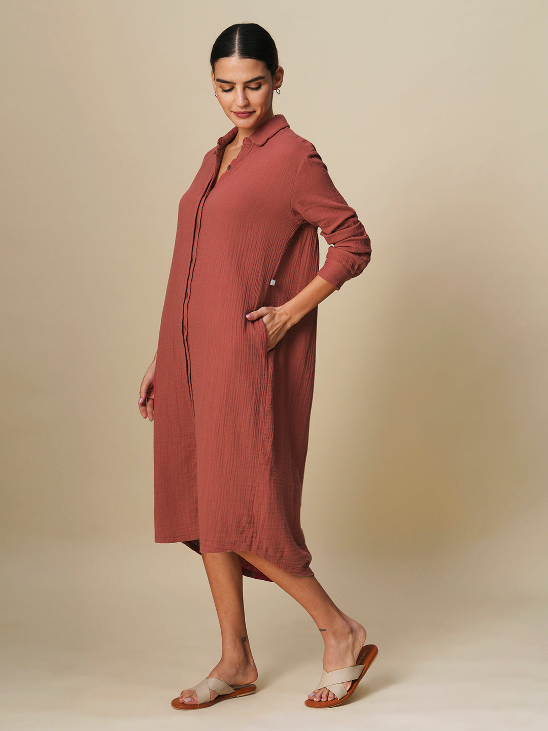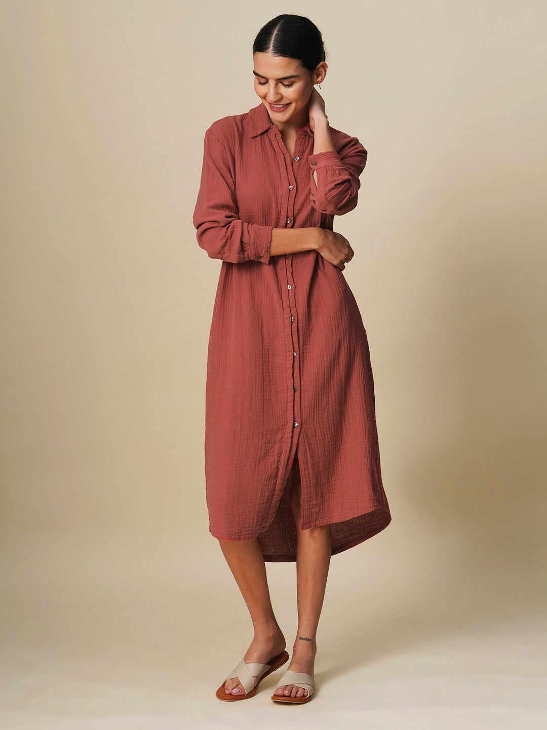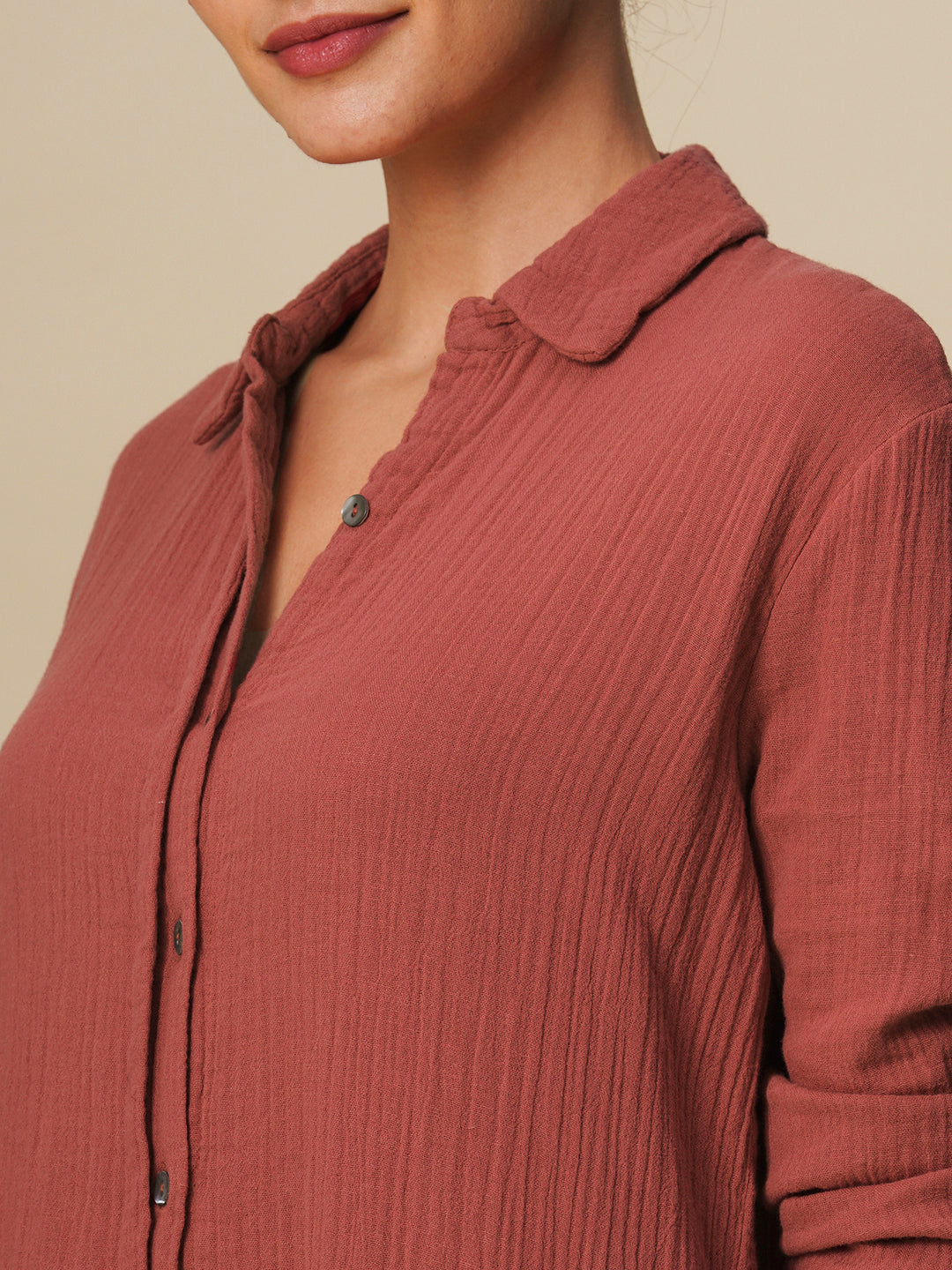 CRINKLE DOUBLE COTTON CREPE LOUNGE SHIRT DRESS